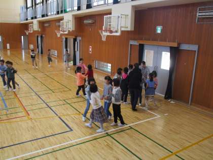 担任の紹介をした後,学年目標を発表し,最後にたけの子学級の3年生と一緒に