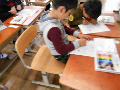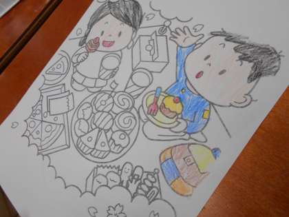 ぬりえを始めるとみんな真剣です。黙々と色を塗っています。