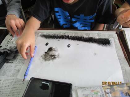 6年生初めての図工は「墨で表す」の単元に挑戦しました。
