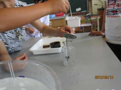 理科の学習で,水上置換法を使って窒素や二酸化炭素の性質について調べました。