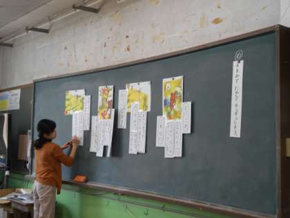 登場人物のくまさんの気持ちになって台詞をつけ加え,想像をふくらませています。子どもたちは,すっかりくまさん役になりきっているようです。教科書に書かれた以上に,素敵なくまさんがたくさん誕生しそうです。音読発表会が楽しみです。