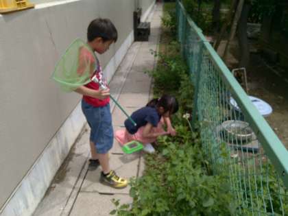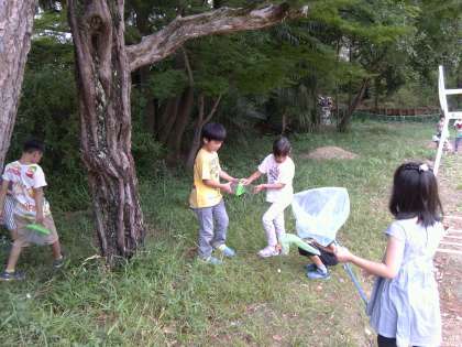 初めて虫取り網を持つ子もいて,みんなとても嬉しそう。