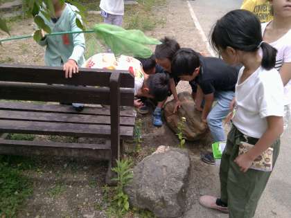生活科の学習で,生き物を探したり,取ったりしました。