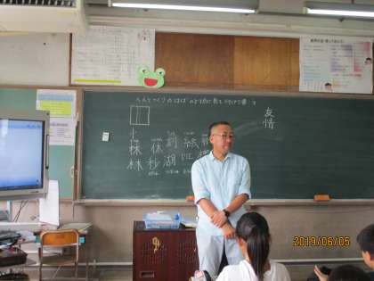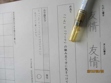書写の時間に,「へん」と「つくり」について復習をし,毛筆で書いた友情を硬筆に生かして学習をしました。