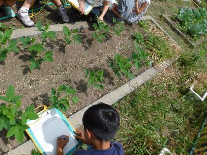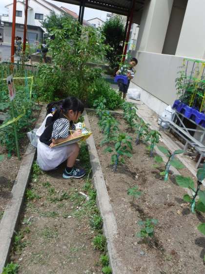 ミニトマトと並行して, 夏野菜の観察も行っています。