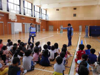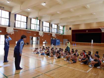 右京警察署から,2名の婦人警察官が来てくださり,交通安全の指導をしてくださりました。