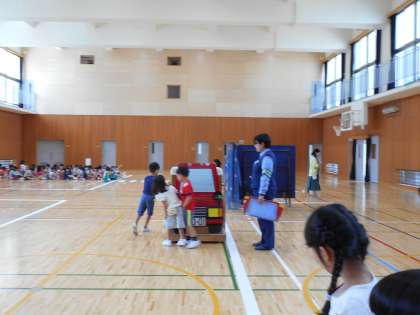 子どもたちは,警察官のお話をよく聞き,真剣に取り組んでいました。道幅が狭く,交通量も多い太秦校区では,この安全指導がどこでもいつでも活かせる事ができます。