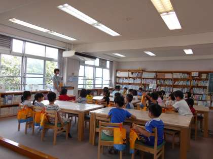 図書館で本の貸し出しができるようになりました。貸し出しの仕方や読書ノートの書き方など,図書館司書の広瀬先生に教えていただきました。