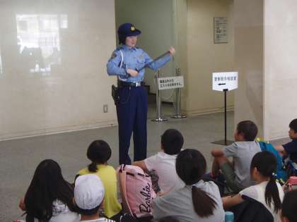 京都府警本部へ見学に行ってきました。事件発生から犯人逮捕までの流れを映像で教えて頂いた後,交通管制センターと通信指令センターを見学させていただきました。交通管制センターでは,原稿を見ずに渋滞情報を放送されていることや通信指令センターでは,110番通報があった時の動きについて教えていただきました。最後に,警察官の方への質問のコーナーでは,時間が足りないほどたくさんの質問が出ていました。