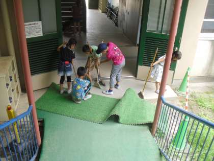 美化委員会からの提案で,毎月第2・第4月曜日は「スーパークリーンマンデー」と名付け,いつもよりも少し細かなところまで掃除をすることになりました。いつもの掃除時間と流す音楽を変え,ちょっと違った気分で,いつもよりも細かなところをきれいしています。