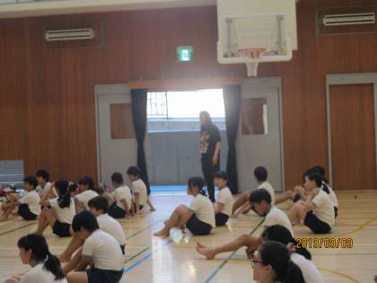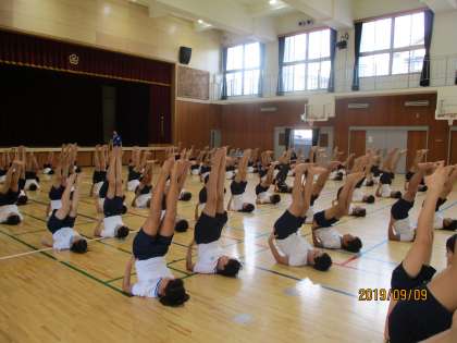 今日は,とても暑い中でしたが,こまめに休憩をとりながら練習を行いました。一人技を曲に合わせてカウントをとりながら初めてやりました。これから細かい部分を丁寧に仕上げていけたらと思います。
