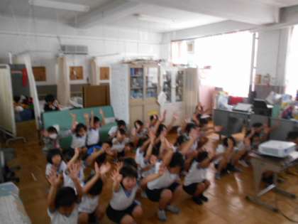 運動会に向けて,「ちょこっとトレーニング」をします。仁枝先生に教えていただきました。毎日,ちょこトレ頑張りましょう☆