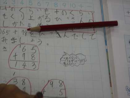 今回は「繰り上がりが2回あるひっさん」の学習です。