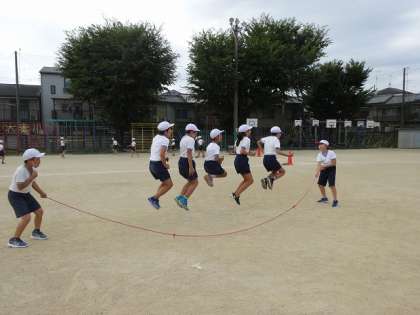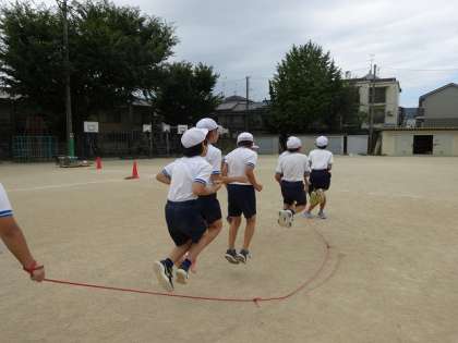 1回目の練習より,縄に入る人数を増やして跳びました。2列になって跳ぶと,タイミングを合わせるのがとても難しいです。子どもたちも苦戦していました。また,縄を回すときには膝を曲げるなどの工夫もしていました。