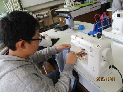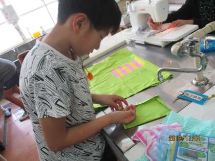 手縫いをしたり,ミシンを使ったりしながら学習を進めています。早く終わった子達から,どんどん先生役として教えに回ってくれています。出来たエプロンを使って,次の調理実習を行いたいと思います。