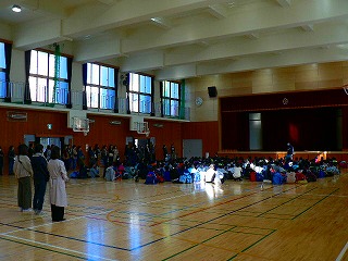 5年生は今日から花背山の家での宿泊学習です。体育館で出発式をしバスに乗って出発しました。