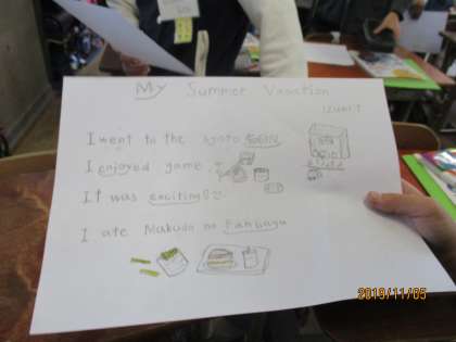 外国語の学習で,夏休みの思い出を文章に書いて交流をしました。