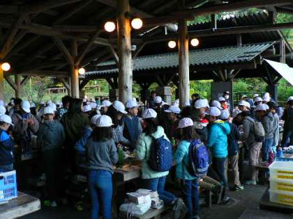 2日目の朝です。朝の集いの後,朝食のパックドックを作りました。