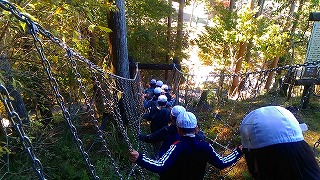 冒険の森では,様々なアスレチックに挑戦しました。ちょっと高くて怖いそうにしている人もいましたが,楽しく活動できました。