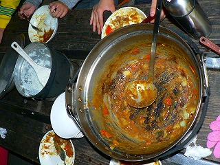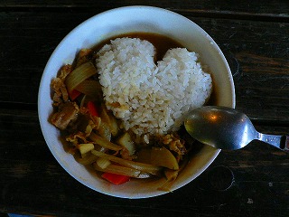どのグループもおいしいカレーライスができました。中にはご飯をハートマークにしているグループもありました。