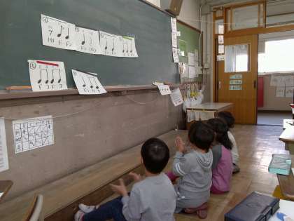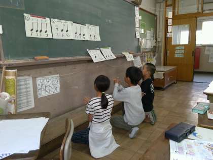 音楽の学習で,いろいろなリズムを組み合わせて