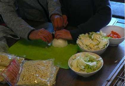 お昼ご飯は,野外炊事で焼きそば作りに挑戦です。作ったり片付けたり,毎日してくれているおうちの方々に感謝です。