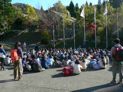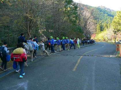全ての予定を終え退所式をしました。お世話になった山の家の方々に感謝の気持ちをこめてあいさつし,学校にむけて出発しました。