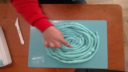 なが〜いひもひもねん土を作るため,やわらかく揉むことから頑張りました。