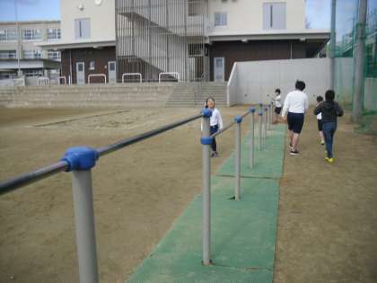 体育の学習で,ゆっくりかけあしをおこなっています。