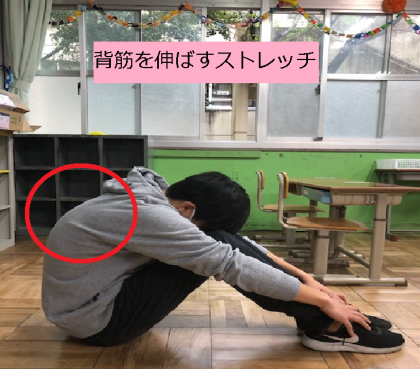 1.両手を前に伸ばして背中を丸め,5秒間キープ