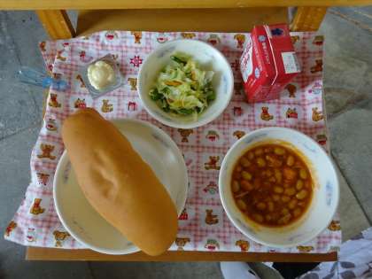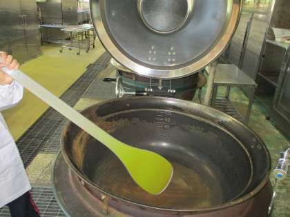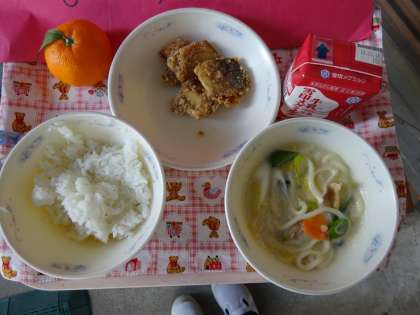 しゃしんのように,おおきなおかまや,きべらでたくさんのきゅうしょくをつくっています。うずまさしょうのきゅうしょくは,とってもおいしいです。みんなにおいしくたべてもらうために,できたてをだしてくれていますよ。