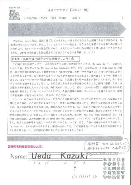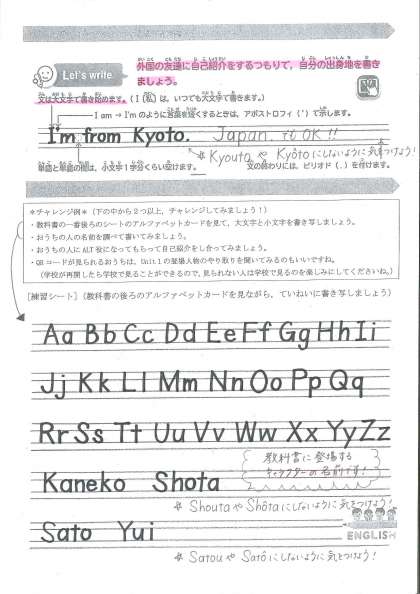 今日は,「自分の名前や出身地の書き方」について紹介します。