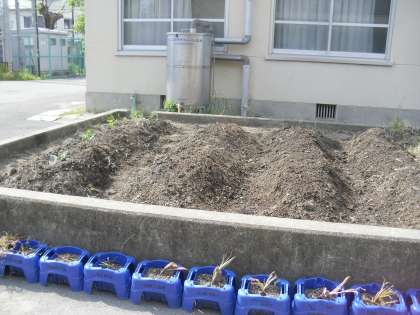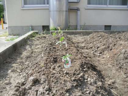 ずんずんたんぼで なつやさい をうえるためのじゅんびをしています。