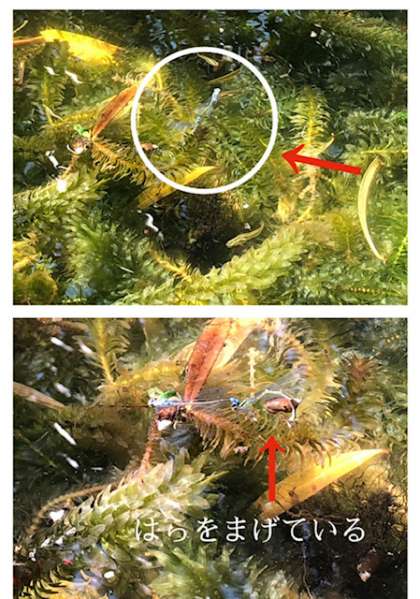 そっと近づいてみると・・・なんと!まさにたまごをうみつけているところでした。
