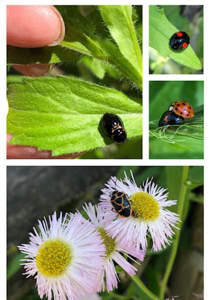 そして,ゆうぐのあるところに進んでいくと,てんとう虫やカメムシの仲間がいました。