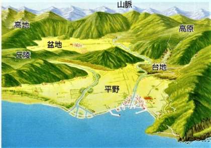 『丘陵(きゅうりょう)』,『盆地(ぼんち)』,『台地』とは,どのような地形でしょう?