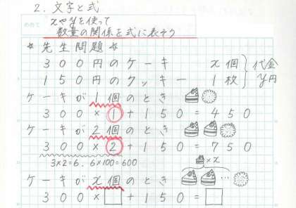 今回は,「文字と式」の学習の紹介をします。