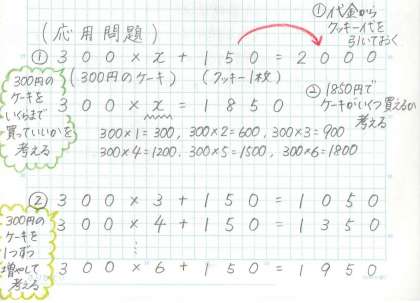 休校中の課題にもありましたが,これまで○や△で表していた式を6年生の学習では,xやyを使って表します。