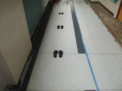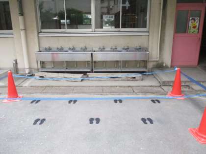 きょうは,せんせいたちで てをあらうときなど みんなが どうやったら おともだちと あいだを あけて ならべるかを かんがえました。