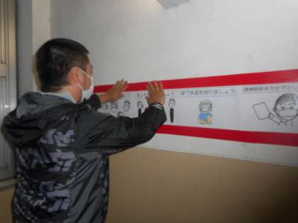 6年生のみなさん,元気に過ごしていますか。学校再開に向けて,みなさんが安全に,そして安心して過ごせるようにと考えて,様々な準備をしています。3密を避け,一人ひとりができる感染予防対策の呼び掛けポスターを貼りました。たくさん貼ってあって,一見息苦しく感じるかもしれませんが,よく見ると実は...みなさんがよく知っている顔が並んでいます。みなさんに楽しみながら見てもらえる日のために,先生たちもがんばります!