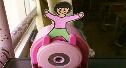 先生は,教室の中で,えんぴつけずりを見つけたので