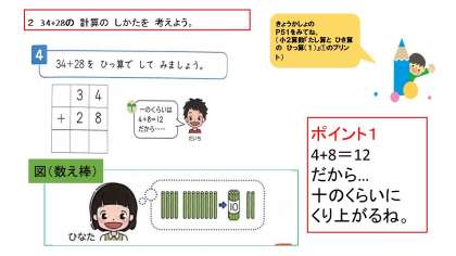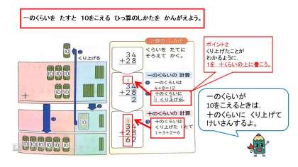 (1)一のくらいが 10をこえる時は,十のくらいにくり上げます。