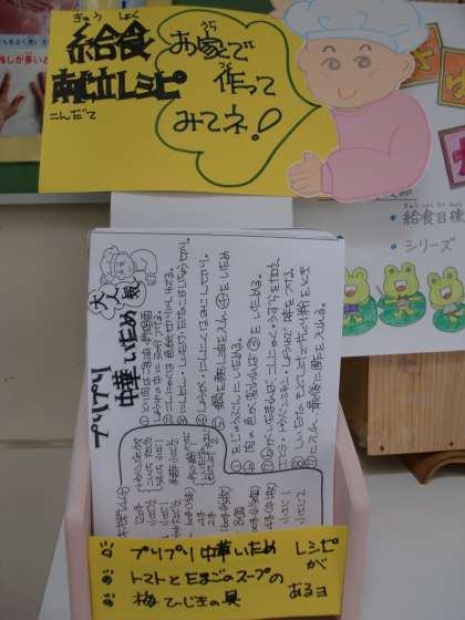 そんなぷりぷり中華いためをご家庭でも作れるように,調理員さんがレシピをかいてくださいました☆