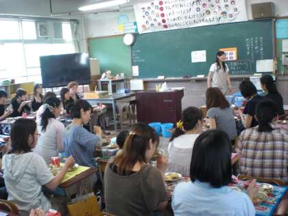 久しぶりに食べる小学校の給食をみなさん味わって食べておられました。