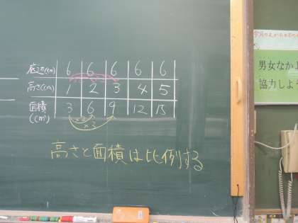 高さが2倍,3倍になると,面積も2倍,3倍になることに気付き,今までの学習から比例していることがわかりました。