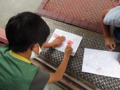 図画工作科の授業で『でこぼこ発見』の学習をしました。子ども達は,教室内や廊下に出てでこぼこをを探しました。また,自分の持ち物の中からもでこぼこを発見していました。見つけたでこぼこを,擦りだしで模様をうつしていきました。