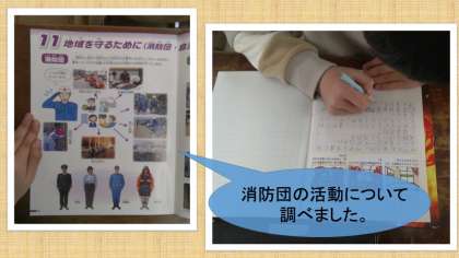 資料をもとに調べたり,調べたことをまとめたりしています。