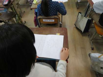 今日はみんなの詩集の交流です。「自分と同じ詩を選んでいる人がいた。」,「同じようなテーマなのに,選んでいる詩が違った。」など,友だちの詩集を読みながら,感想を書きました。