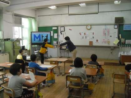 アルファベットの発音の練習や色を英語で言う学習をしています。子どもたちも楽しんで学習しています。