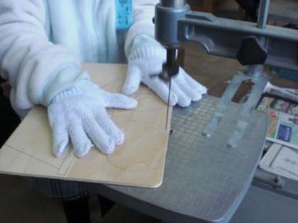図画工作の時間には,電動糸のこぎりを使ってパズルを作成しています。